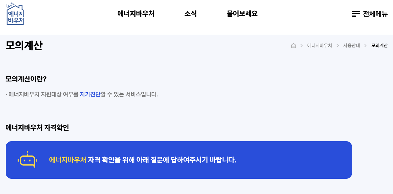 또한, 방문이 어렵다면 아래 화면처럼 온라인 상에서 지원대상 여부를 확인 할 수 있어요!